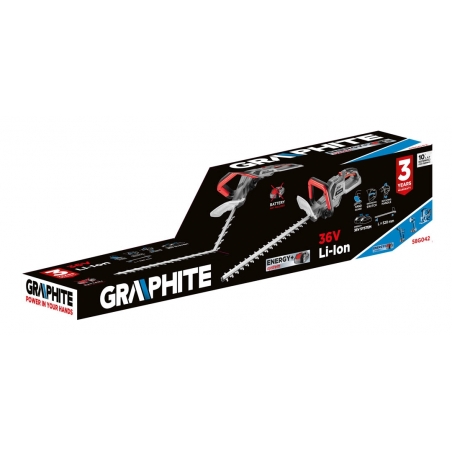 Nożyce do żywopłotu akumulatorowe 36V, Li-Ion, prędkość ostrza bez obciążenia 2800 min-1, szerokość cięcia 520 mm, dł. listwy tnącej 595 mm, max. grubość cięcia 20 mm, masa 3 kg, akcesoria: pochwa na ostrze - 1szt., kompatybilne z akumulatorami Energy+
