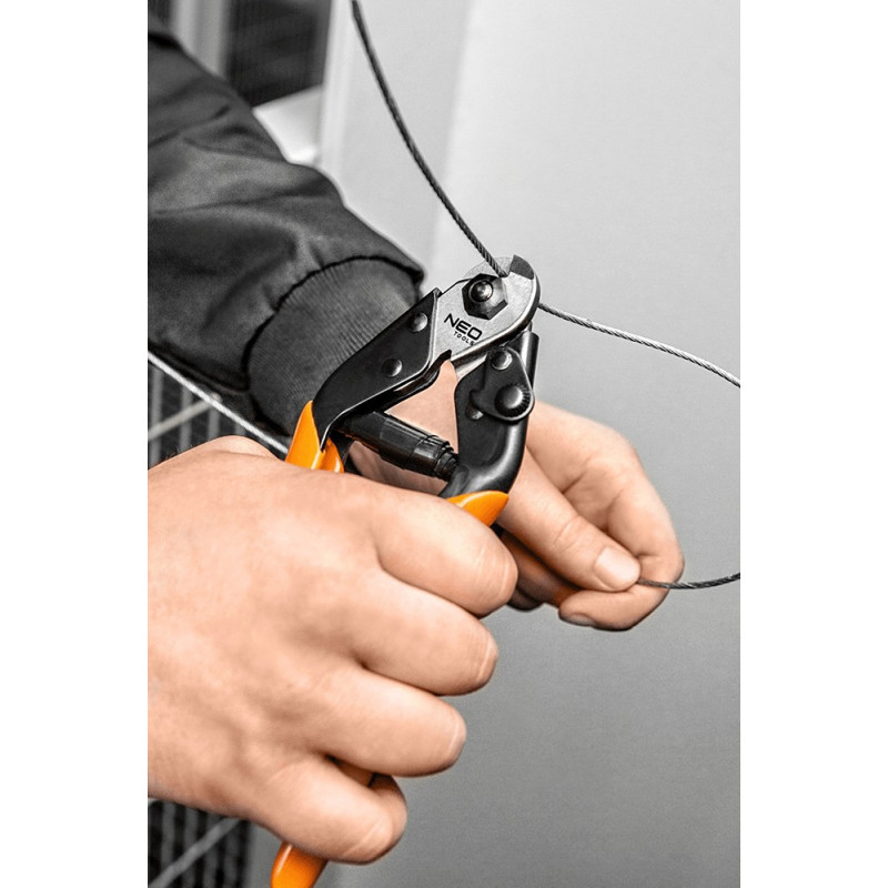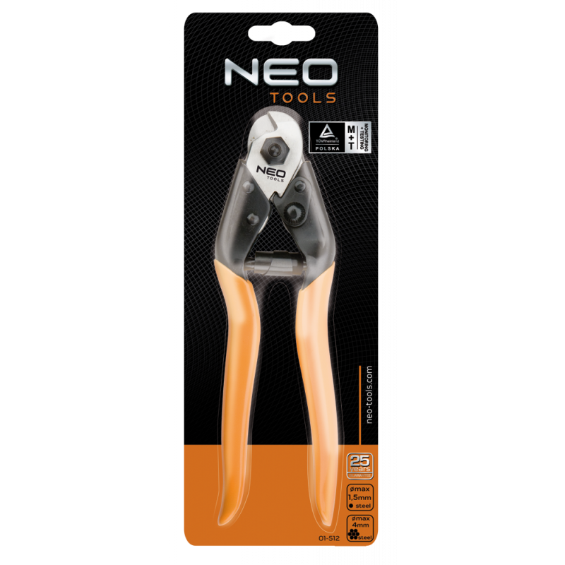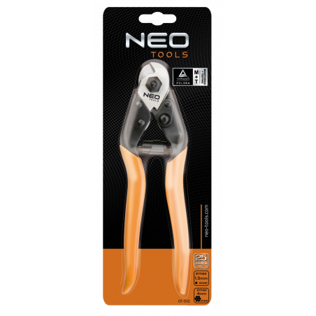 Obcinak do drutów i linek stalowych, 190 mm, zakres cięcia: dla linek stalowych maksymalna średnica 4.0 mm, dla drutu stalowego 1.5 mm, hartowane szczęki, stal CrV, uchwyt pokryty PCV, TÜV