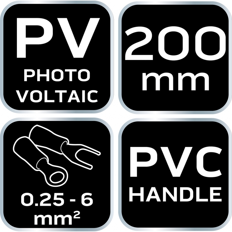 Ściągacz izolacji przewodów fotowoltaicznych długość 220 mm, uchwyt PVC, stal węglowa, średnice przewodów 0,25mm2 - 6,0 mm2, dwukomponentowy uchwyt, ogranicznik długość izolacji