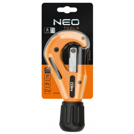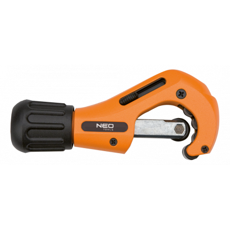 Obcinak do rur miedzianych i aluminiowych 3 - 35 mm, teleskopowy, 4 rolki prowadzące, z gratownikiem, zapasowe kółko tnące, kółko tnące ze stali stopowej SUJ2, twardość kółka tnącego 56-58 HRc, TÜV