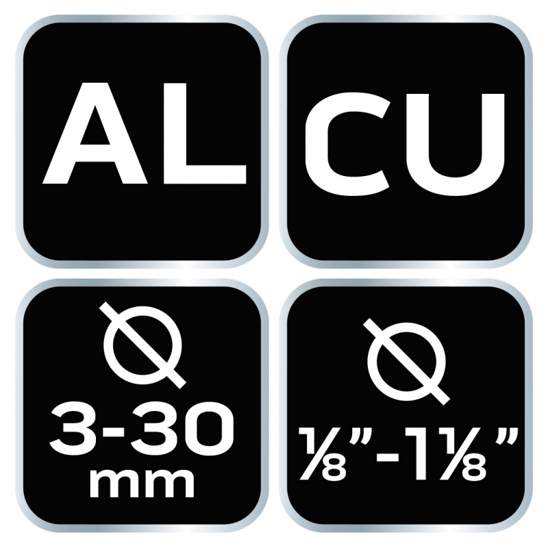 Obcinak do rur miedzianych i aluminiowych rozstaw szczęk 3 - 30 mm (1, 8" - 1.1/4"), korpus aluminiowy, dwie rolki prowadzące, śruba nastawna, gratownik w korpusie, 02-407 ostrze do wymiany