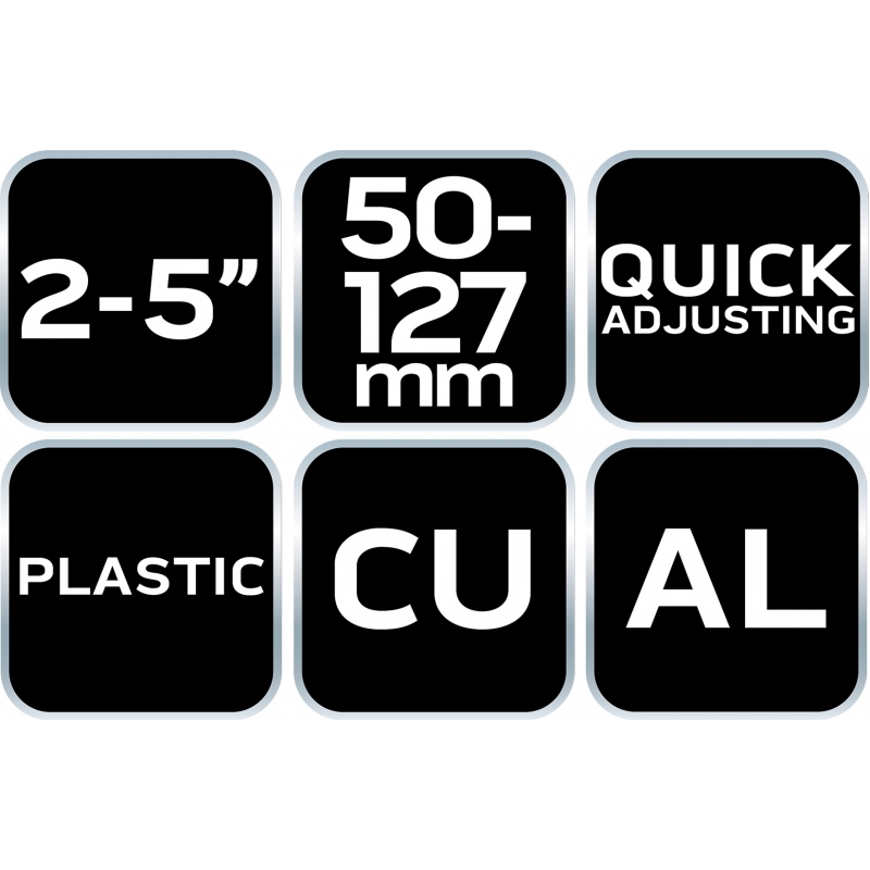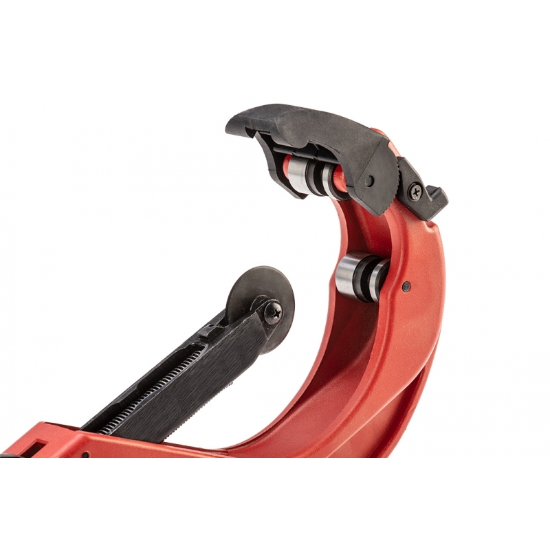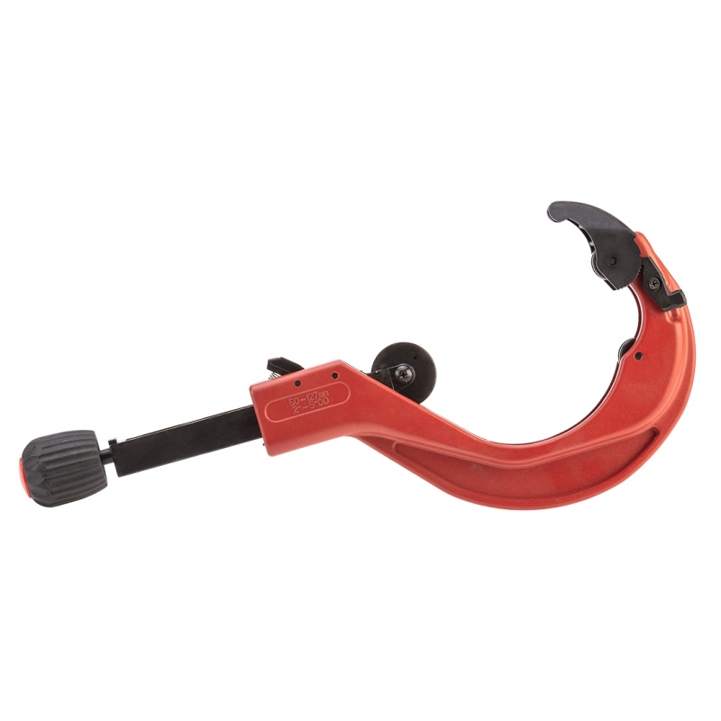 Obcinak do rur miedzianych, aluminiowych, plastikowych, rozstaw szczęk 50-127 mm, 2"-5", mechanizm szybkiej nastawy rozmiaru, pokrętło, korpus ze stopu aluminium, 2 rolki prowadzące, kółko tnące ze stali hartowanej