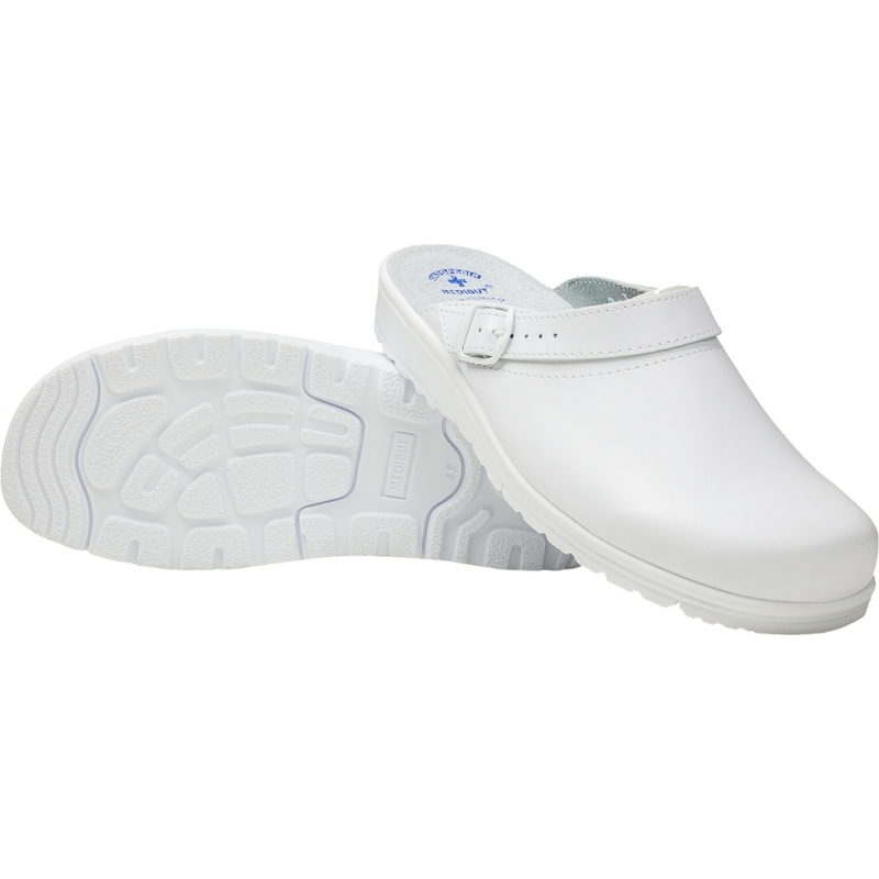 - cholewka gładka wykonana ze skóry, zabezpieczona powłoką PU, która umożliwia czyszczenie i dezynfekcje
