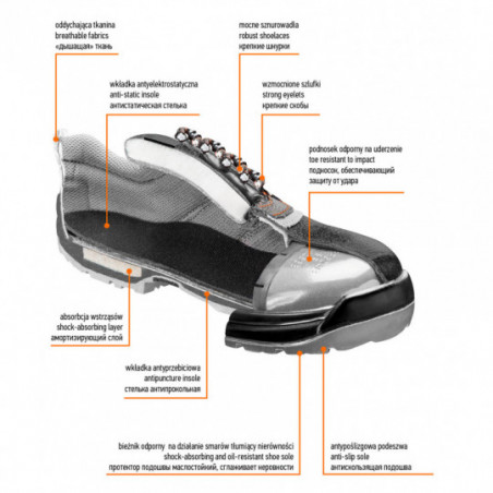 Półbuty robocze S1, stalowy podnosek, rozmiar 43