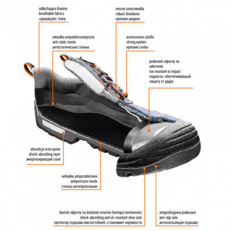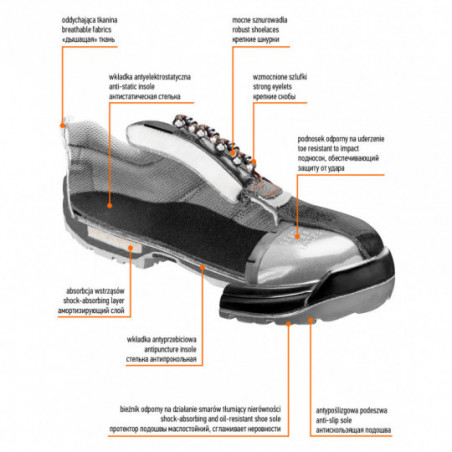 Półbuty robocze S1, stalowy podnosek, rozmiar 45