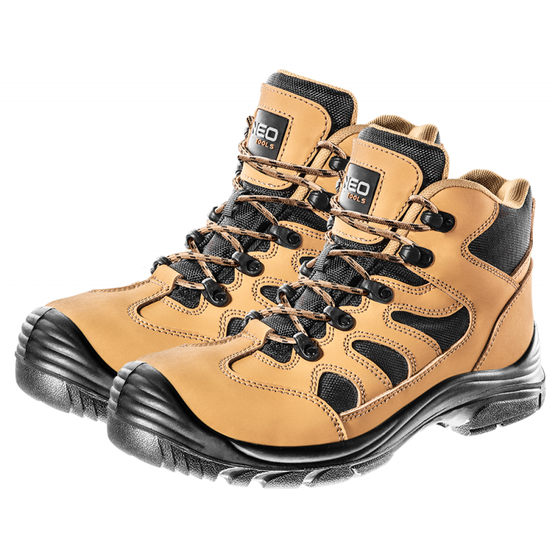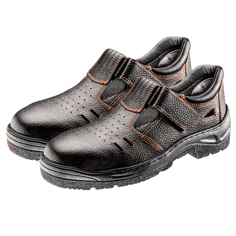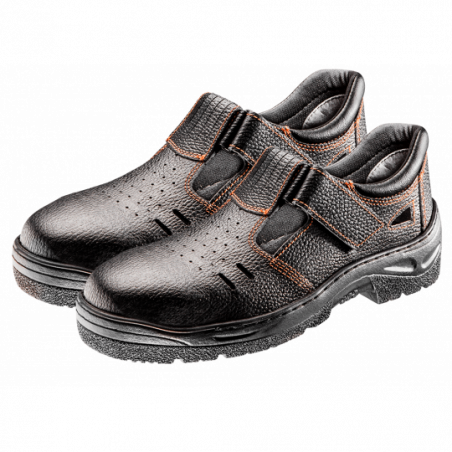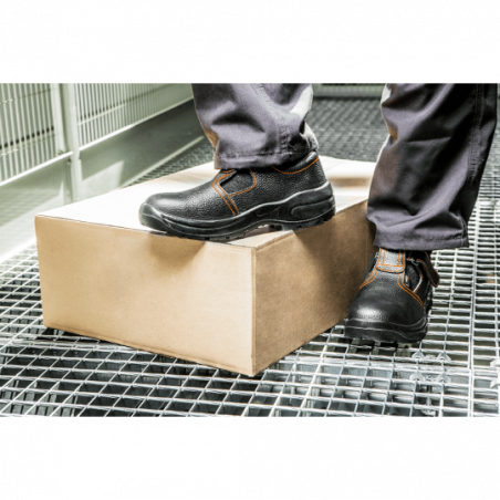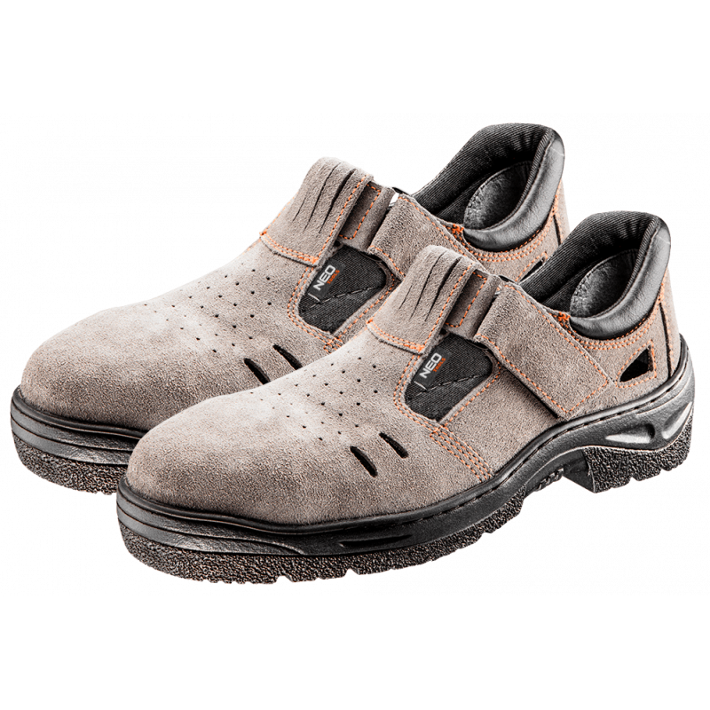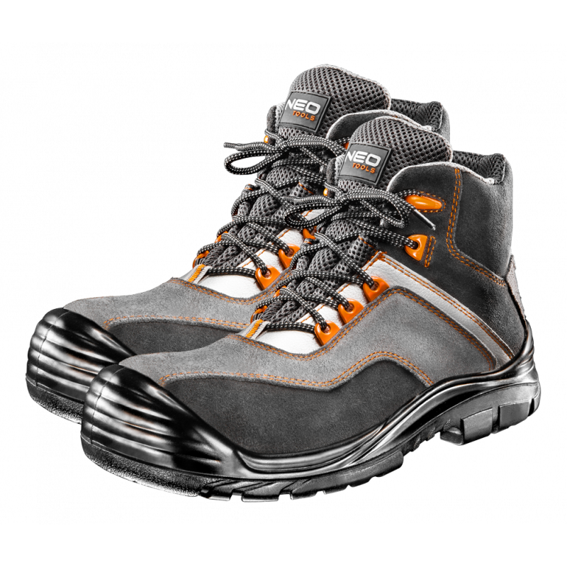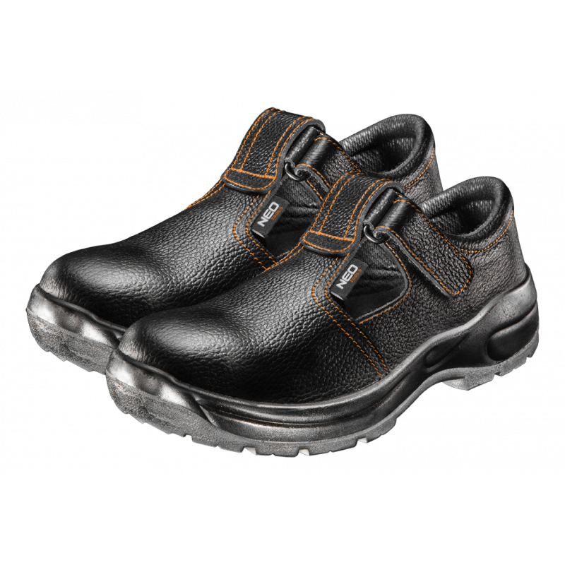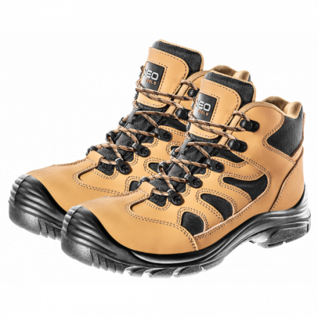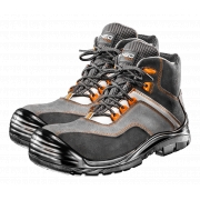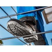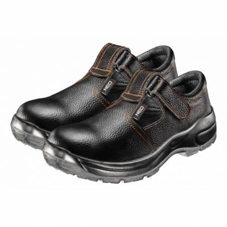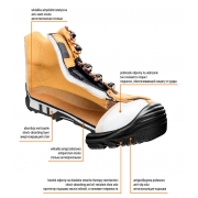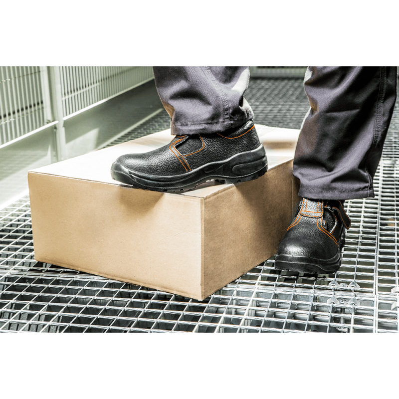 Półbuty robocze, zamszowe, wodoodporne, bez elementów metalowych, antypoślizgowa podeszwa z systemem absorbującym wstrząsy, odporna na ścieranie, oleje, benzynę i inne rozpuszczalniki organiczne, podnosek kompozytowy wytrzymujący uderzenie do 200J, kompozytowa wkładka antyprzebiciowa, wkładka antyelektrostatyczna, but wykonany w kategorii S3 SRC (SRC- odporność na poślizg na podłożu ceramicznym pokrytym roztworem laurylosiarczanu sodu (SLS) i na podłożu ze stali pokrytym glicerolem), certyfikat CE
