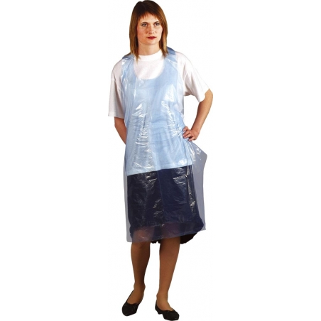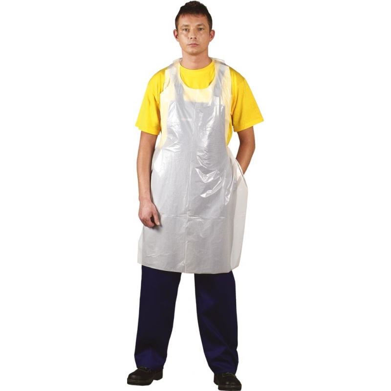 Fartuch przedni foliowy zakładany na szyję z wiązaniem z tyłu pleców.