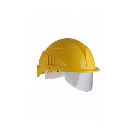 Hełm ochronny VISION z uchylną osłoną twarzy (poliwęglanowa krótka) chowaną pod skorupę hełmu. Zakres regulacji za pomocą paska dopasowujący hełm do obwodu głowy od 51 do 63 cm. Dane techniczne: masa 460 g; zakres temperatur, w których hełm może być użytkowany: - 40°C do + 50°C; elektroizolacyjność 1000 Vac; odporność na odkształcenia boczne i odpryski stopionego metalu. Osłona oczu wykonana z poliwęglanu zgodnie z normą PN-EN 166. Zgodność z normą: PN-EN 397.