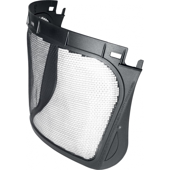 Osłona twarzy. - wykonana z siatki z poliamidu, nie przewodzi prądu i zapewnia podwyższony poziom ochrony przed uderzeniami ciał stałych o wysokiej prędkości (45m/s) bez rezygnacji z pola widzenia i wygody użytkownika - do mocowania na hełmach ochronnych z serii G3000 lub G22 - waga: 45 g - zakres temperatur od -5°C do +55°C - zakres zastosowania: leśnictwo, ogrodnictwo i praca przy instalacjach elektrycznych - wytrzymałość mechaniczna: ochrona przed cząstkami o dużej prędkości i uderzeniu o niskiej energii - spełnia wymagania normy EN1731