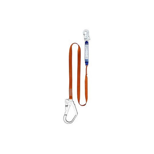 Amortyzator bezpieczeństwa z taśmą poliamidową. Całkowita długość urządzenia 2 m. Fabrycznie dołączone zatrzaśniki stalowe AZ 002 i AZ 022. Amortyzator wykonany z taśmy poliamidowej. Wymiary amortyzatora: 160 x 35 x 45 mm. Maksymalne wydłużenie amortyzatora: ~1 m. Urządzenie posiada certyfikat CE. Amortyzatory bezpieczeństwa są składnikiem osobistego sprzętu chroniącego przed upadkiem z wysokości zgodnym z normą PN-EN 355.