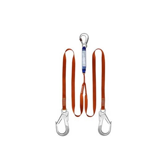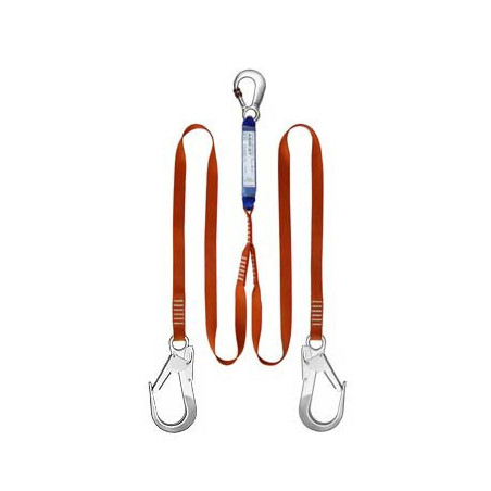 Amortyzator bezpieczeństwa z podwójną taśmą poliamidową. Całkowita długość urządzenia 2 m + 2 m. Fabrycznie dołączone zatrzaśniki stalowe AZ 002 i AZ 022 Amortyzator wykonany z taśmy poliamidowej. Wymiary amortyzatora: 160 x 35 x 45 mm. Maksymalne wydłużenie amortyzatora: ~1 m. Urządzenie posiada certyfikat CE. Amortyzatory bezpieczeństwa są składnikiem osobistego sprzętu chroniącego przed upadkiem z wysokości zgodnym z normą PN-EN 355.