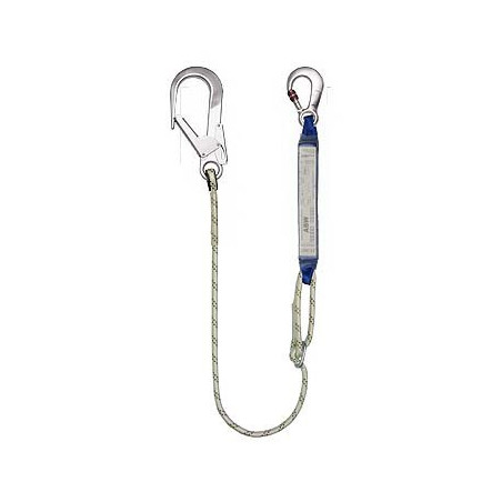Amortyzator bezpieczeństwa AW 200 z uniwersalną linką bezpieczeństwa regulowaną poliamidową LB 100. Całkowita długość urządzenia 2 m. Fabrycznie dołączone zatrzaśniki duraluminiowe AZ 003 i AZ 023. Amortyzator wykonany z taśmy poliamidowej. Wymiary amortyzatora: 330 x 22 x 47 mm. Urządzenie posiada certyfikat CE. Amortyzatory bezpieczeństwa są składnikiem osobistego sprzętu chroniącego przed upadkiem z wysokości zgodnym z normą PN-EN 355.