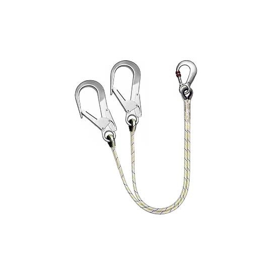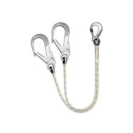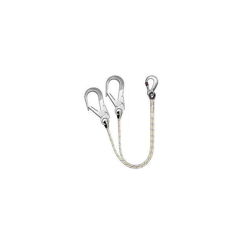 Podwójna linka bezpieczeństwa. Materiał: lina poliamidowa w oplocie o średnicy 10,5 mm. Fabrycznie dołączone zatrzaśniki duraluminiowe AZ 003 i AZ 023. Urządzenie posiada certyfikat CE. Podwójna linka bezpieczeństwa stanowi wraz z amortyzatorem (np. ABM) zespół łącząco-amortyzujący - składnik sprzętu chroniącego przed upadkiem z wysokości - zgodnie z PN-EN 354.Dostępne długości: 1,4 + 1,4 m, 1,6 + 1,6 m, 1,9 + 1,9 m, 2,0 + 2,0 m.