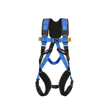Szelki z podkładkami na barki i uda oraz pasem biodrowym, wyposażone w tylną klamrę zaczepową i przedni punkt zaczepowy; regulacja pasów udowych, pasów barkowych i pasa piersiowego. Automatyczne klamry łącząco-regulacyjne. Rozmiary: - M-XL (średni) - XXL (duży) Masa: - M-XL - 1315 g - XXL - 1365 g Szelki posiadają certyfikat CE.