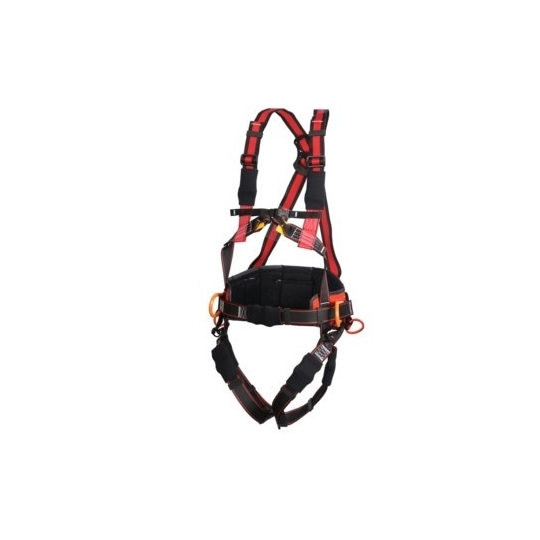 Szelki izolacyjne bez odsłoniętych elementów metalowych. Szelki wyposażone w tylny i przedni punkt zaczepowy; regulacja pasów udowych; pasów barkowych i pasa piersiowego; obrotowy pas do pracy “w podparciu” z bocznymi klamrami zaczepowymi zgodny z normą PN-EN 358; pasy barkowe wykonane z taśmy elastycznej; automatyczne klamry łącząco-regulacyjne. Rozmiary: - M-XL (średni) - XXL (duży) Masa: - M-XL - 1790 g - XXL - 1950 g Szelki posiadają certyfikat CE.