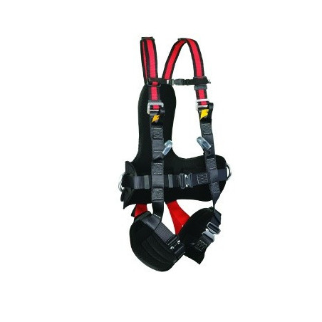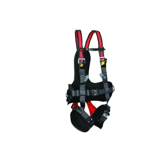 Szelki z ergonomiczną podkładką na plecy i uda oraz pasem biodrowym, wyposażone w tylny i przedni punkt zaczepowy oraz punkt do pracy w podwieszeniu zgodnie z normą PN-EN 813; regulacja pasów barkowych wykonanych z taśmy elastycznej i pasa piersiowego; pas do pracy "w podparciu" z bocznymi klamrami zaczepowymi zgodny z normą PN-EN 358. Rozmiary M-XL (średni), XXL (duży) Masa: M-XL - 1780 g, XXL - 1860 g Urządzenie posiada certyfikat CE. Szelki bezpieczeństwa są podstawowym składnikiem sprzętu chroniącego przed upadkiem z wysokości, zgodnym z normą PN-EN 361.
