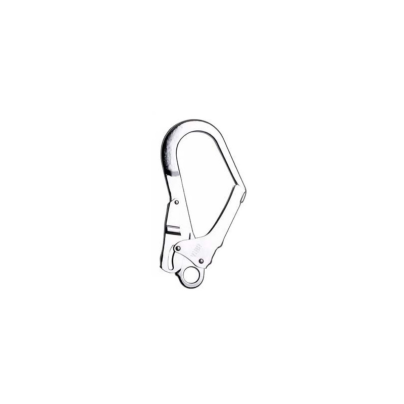 Zatrzaśnik z zapadką blokującą. Otwarcie: 50 mm. Materiał: stal galwanicznie zabezpieczona przed korozją. Masa: 500 g. Wymiary: 220 x 120 mm. Urządzenie posiada certyfikat CE, PN-EN 362. Zatrzaśnik nierozłączalny - dostępny jako wmontowany fabrycznie w sprzęcie produkowanym przez firmę PROTEKT lub dostępny oddzielnie jako element zaczepowy.