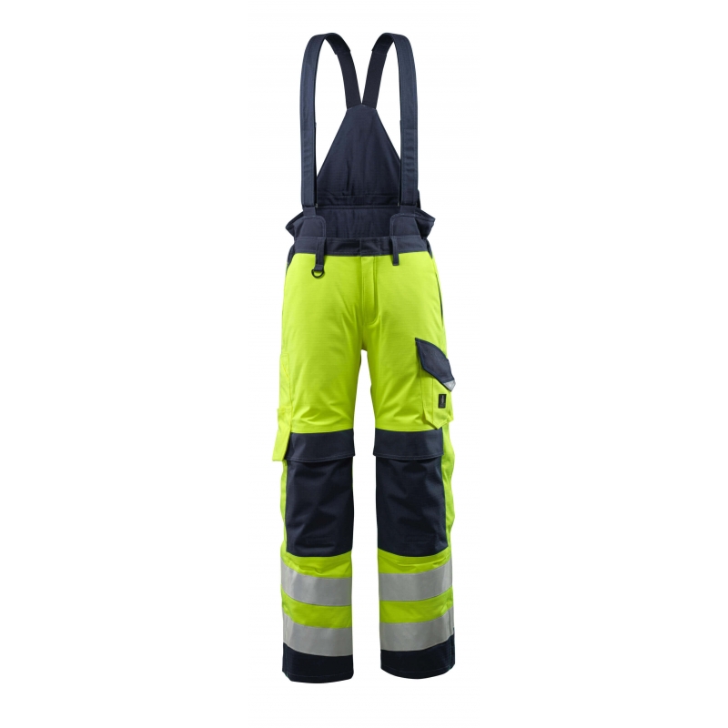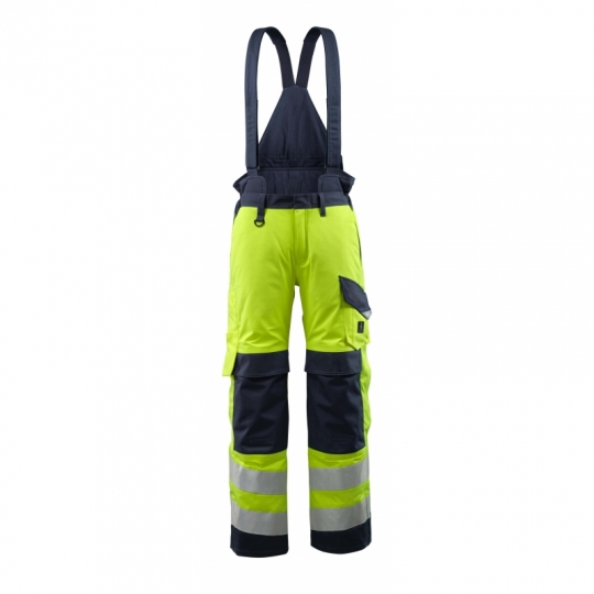 Oddychający, wiatro- i wodoodszczelny produkt z klejonymi szwami.; Antystatyczna, chroniąca przed kwasem i ognioodporna tkanina.; Odporność na zabrudzenia.; Podwyższona część tylna zapewnia stabilność oraz ciepło.; Regulowane kieszenie na kolanach umożliwiają odpowiednie umieszczenie nakolanników.; Certyfikowane do użytku z wkładkami ochronnymi MASCOT typu SHORT lub LONG (wysokość kieszeni na kolanach jest regulowana).