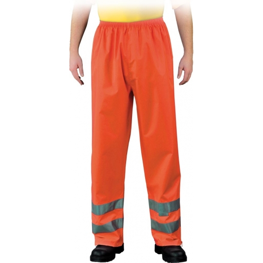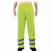 Spodnie przeciwdeszczowe z pasami odblaskowymi.