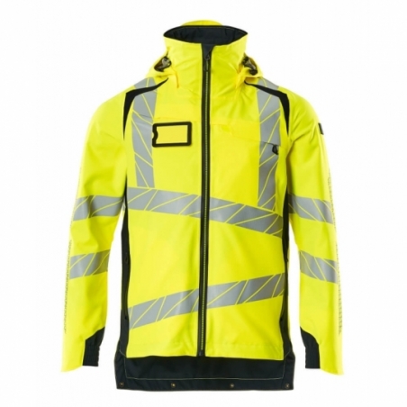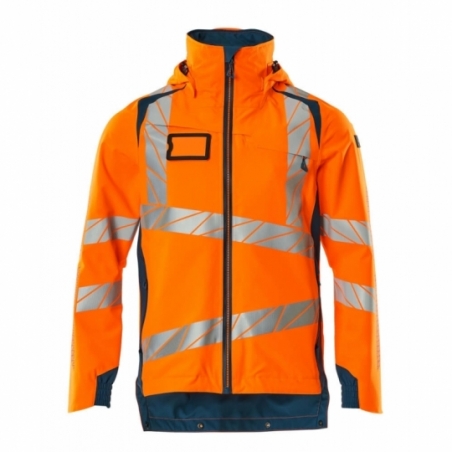 Oddychający, wiatro- i wodoodszczelny produkt z klejonymi szwami.; Zapięcie na wodoszczelny zamek błyskawiczny i wewnętrzna klapka sztormowa.; Kieszeń na piersi zapinana na wodoszczelny zamek błyskawiczny.; Przednie kieszenie zapinane na wodoszczelne zamki błyskawiczne.; Materiał w dolnej części pleców można wydłużyć odpinając guziki i dzięki temu uzyskać dodatkową ochronę przeciw wiatrowi i złej pogodzie.