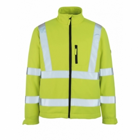 Fluorescencyjny z pionowymi i poziomymi paskami odblaskowymi. Oddychający. Polar po wewnętrznej stronie. Zapięcie na zamek błyskawiczny i wewnętrzna klapka sztormowa. Kieszeń na piersi zapinana na zamek błyskawiczny. Przednie kieszenie. Wewnętrzne kieszenie. Ergonomiczny kształt rękawów zapewnia dużą swobodę ruchów. Zapięcie na rzepy przy mankietach. Regulacja na gumki w pasie.