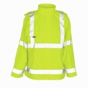 Właściwości wiatro- i wodoszczelne.; Wodoodporny materiał z klejonymi szwami, więc deszcz nie dostanie się do środka.; Dodatkowa widoczność dla otoczenia dzięki zastosowaniu pionowych i poziomych pasków refleksyjnych.; Kaptur z regulowaną gumką, można go zwinąć i umieścić w kołnierzu.; Otwory wentylacyjne na plecach.