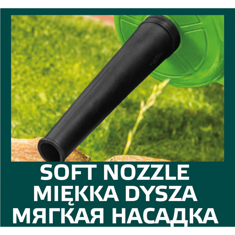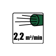 Dmuchawa elektryczna 500W, obroty 16000 min⁻¹, wydatek powietrza 2.2 m3/min, pojemność worka 0.6 l, (LxHxW) 410 x 210 x 180 mm, masa 1.5 kg