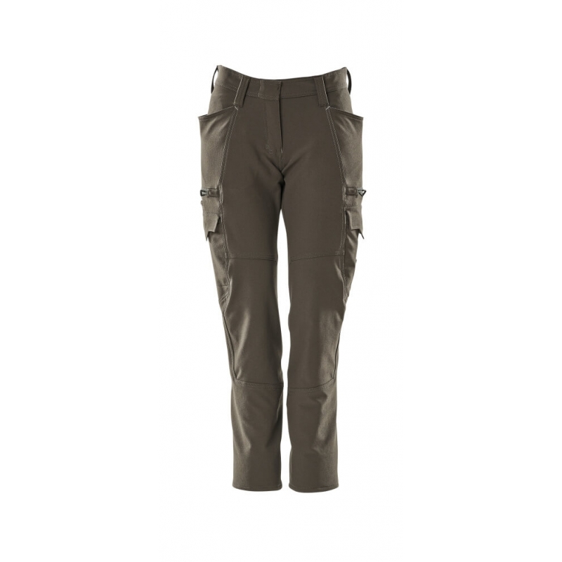 Damski krój DIAMOND. Wodoodporne wykończenie. Nadzwyczajnie elastyczny, lekki i trwały. Materiału praktycznie nie odczuwa się na skórze, gdyż kieszenie są wkomponowane w design. Podwójne szwy w nogawkach i w kroku. Obniżona talia. Nogawki w ergonomicznym kształcie. Szlufki do paska. Zapięcie na zamek błyskawiczny. Przednie kieszenie. Tylne kieszenie. Kieszeń na udzie z klapką i kieszonką na telefon zapinana na ukryty zatrzask oraz zintegrowanym uchwytem na identyfikator. Odczepiany uchwyt na identyfikator. Kieszeń na udzie i kieszeń na calówkę. Z nadrukiem i odblaskami.