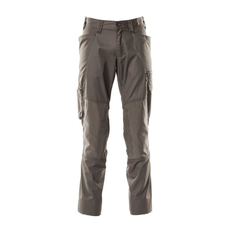 Jednokolorowy. Lekka tkanina. Podwójne szwy w nogawkach i w kroku. Obniżona, dopasowana talia. Nogawki w ergonomicznym kształcie. Szlufki do paska. Rozporek zapinany na zamek błyskawiczny. Przednie kieszenie. Tylne kieszenie. Kieszeń na udzie z klapką i kieszonką na telefon zapinana na ukryty zatrzask oraz zintegrowanym uchwytem na identyfikator. Odczepiany uchwyt na identyfikator. Wzmocniona tkaniną CORDURA® kieszeń na calówkę. Kieszenie na kolanach z trwałego materiału CORDURA® (500 D) są regulowane. Łatwa, indywidualna regulacja wysokości kieszeni na kolanach.