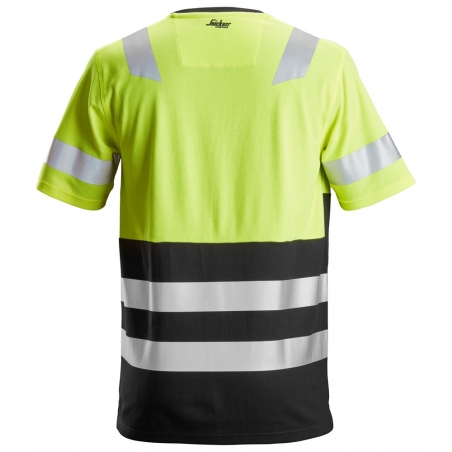T-shirt o intensywnej widzialności z wewnętrzną warstwą wykonaną z bawełny dla optymalnego komfortu, a zewnętrzną — z elastycznego, odblaskowego materiału zapewniającego widzialność klasy 1.