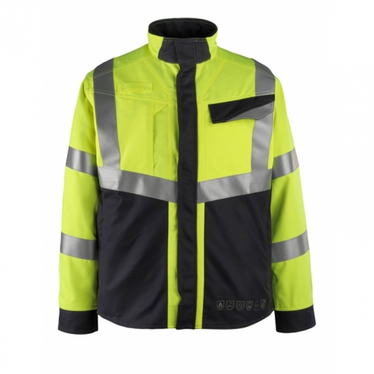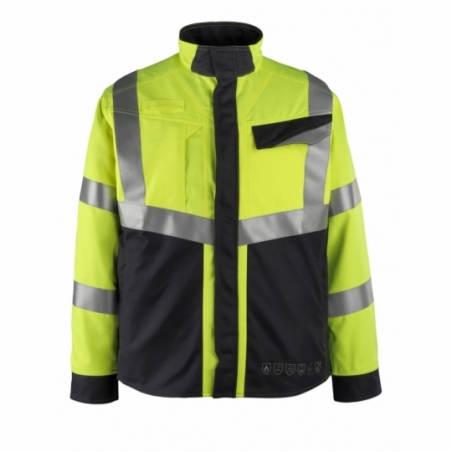 Antystatyczna, chroniąca przed kwasem i ognioodporna tkanina.; Odporność na zabrudzenia.; Duża swoboda w poruszaniu zapewniona poprzez ergonomiczny krój rękawów.; Kieszenie z klapkami uniemożliwiają dostęp np. Iskier.; Przedłużenie pleców jako dodatkowa ochrona przed zimnem.