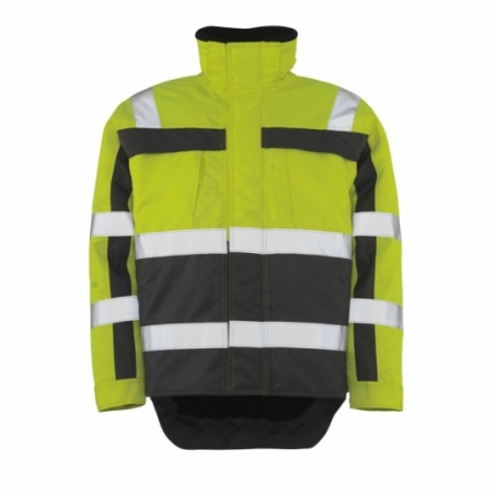 Oddychający, wiatro- i wodoodporny MASCOTEX® z klejonymi szwami; Futrzana podszewka w części korpusowej i pikowana podszewka w rękawach.; Przedłużenie pleców jako dodatkowa ochrona przed zimnem.; Zamek błyskawiczny w wewnętrznej dolnej części pleców stosowany jest przy umieszczaniu haftu.; Możliwość dopięcia kaptura za pomocą zatrzasków.