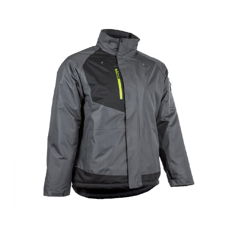 - 1 naszywana kieszeń na rękawie z wodoodpornym zamkiem, kieszeń (4): 2 wewnętrzne naszywane kieszenie zamykane na rzep