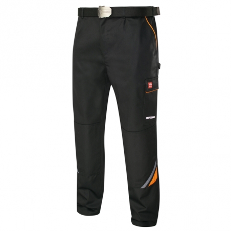 Spodnie PROFESSIONAL BLACK łączą nowoczesny wygląd z niezrównaną wytrzymałością, tworząc idealne rozwiązanie dla wymagających użytkowników w branży technicznej, budowlanej i przemysłowej.
