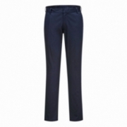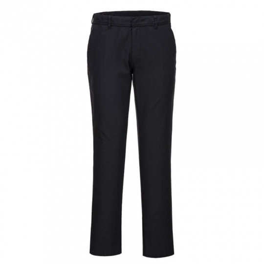 - Elastyczne spodnie damskie będące idealnym rozwiązaniem do pracy. Oferują nowoczesny i dopasowany krój z dynamicznej tkaniny bawełnianej o skośnym splocie. Elastyczny materiał zapewnia najwyższy komfort i swobodę ruchów. Posiadają boczne kieszenie, tylną kieszeń zapinaną na guziki i zapięcie w pasie na haftkę. Bardzo wytrzymałe, z podwójnymi szwami na całej długości i zapięciami we wszystkich punktach naprężeń.