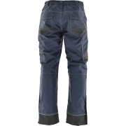 Model wyposażony jest w dwie kieszenie dolne, dwie tylne oraz praktyczną kieszeń miarową. Pas tyłu posiada wewnętrzną gumę umożliwiającą regulację obwodu, co zwiększa wygodę noszenia. Dodatkowe elementy odblaskowe poprawiają widoczność użytkownika w słabym oświetleniu.