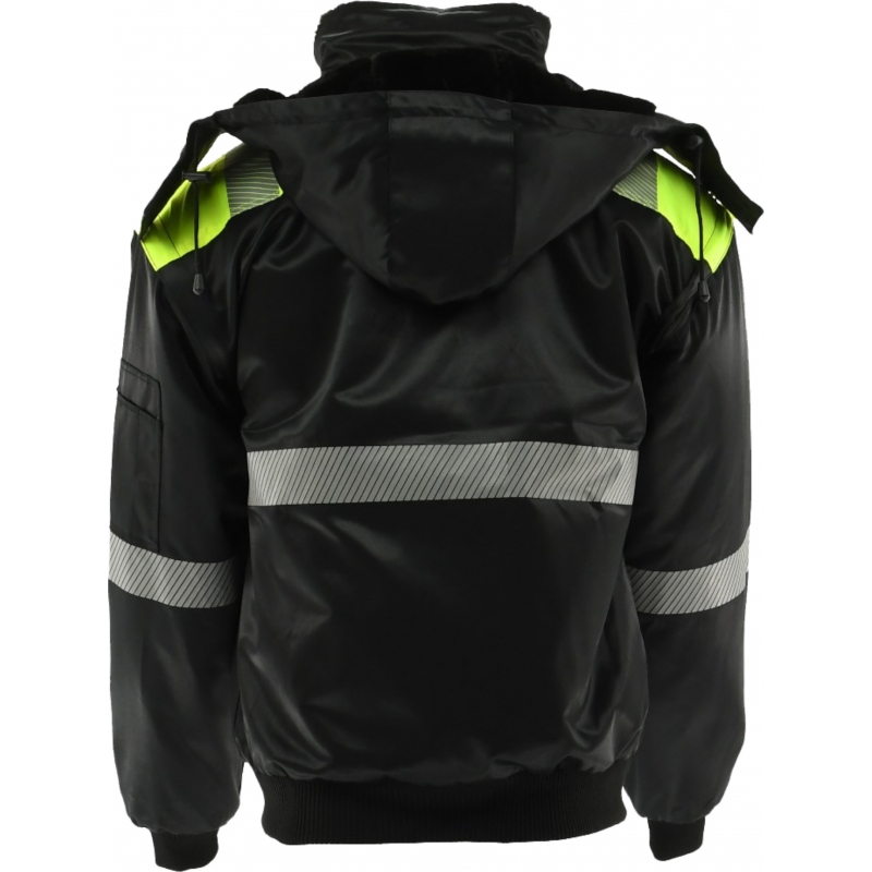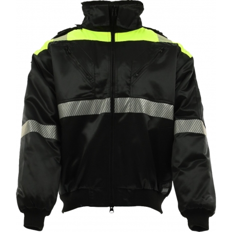 Opis techniczny produktu: » zapinana na dwusuwakowy zamek » podkrój szyi wykończony wysoką stójką » wypinany kołnierz futrzany » dwie kieszenie piersiowe, zapinane na zamek » dwie kieszenie dolne » dwie kieszenie wewnętrzne » rękawy odpinane wykończone ściągaczem » na lewym rękawie funkcyjna kieszeń » dół kurtki wykończony ściągaczem » wewnątrz futrzana podpinka » taśmy odblaskowe segmentowe