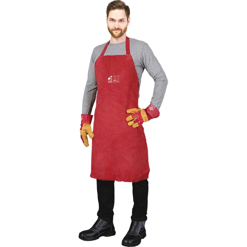 RAW-POL WY‑FSB to wytrzymały fartuch spawalniczy wykonany z dwoiny bydlęcej, przeznaczony do ochrony przed odpryskami, iskrami i wysoką temperaturą. Szyty trudnopalnymi nićmi kevlarowymi, wyposażony w regulowane paski z plastikowymi klamrami. Zakładany na szyję, zapewnia solidną ochronę przednią podczas prac spawalniczych i ciężkich prac przemysłowych. Spełnia normy EN ISO 11611 (klasa 2 A1) oraz EN ISO 13688.