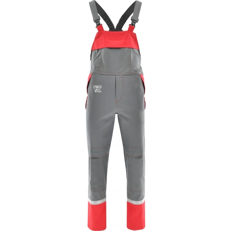 Ogrodniczki Grom 3w1 spełniają rygorystyczne normy spawalnicze, a ich konstrukcja została wzbogacona o taśmy odblaskowe na nogawkach, które zwiększają widoczność i bezpieczeństwo po zmroku.