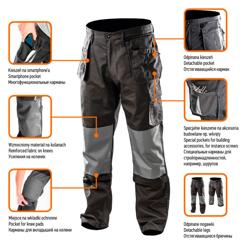 Spodnie robocze, rozmiar XXL/58, odpinane kieszenie i nogawki