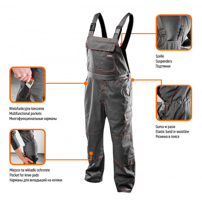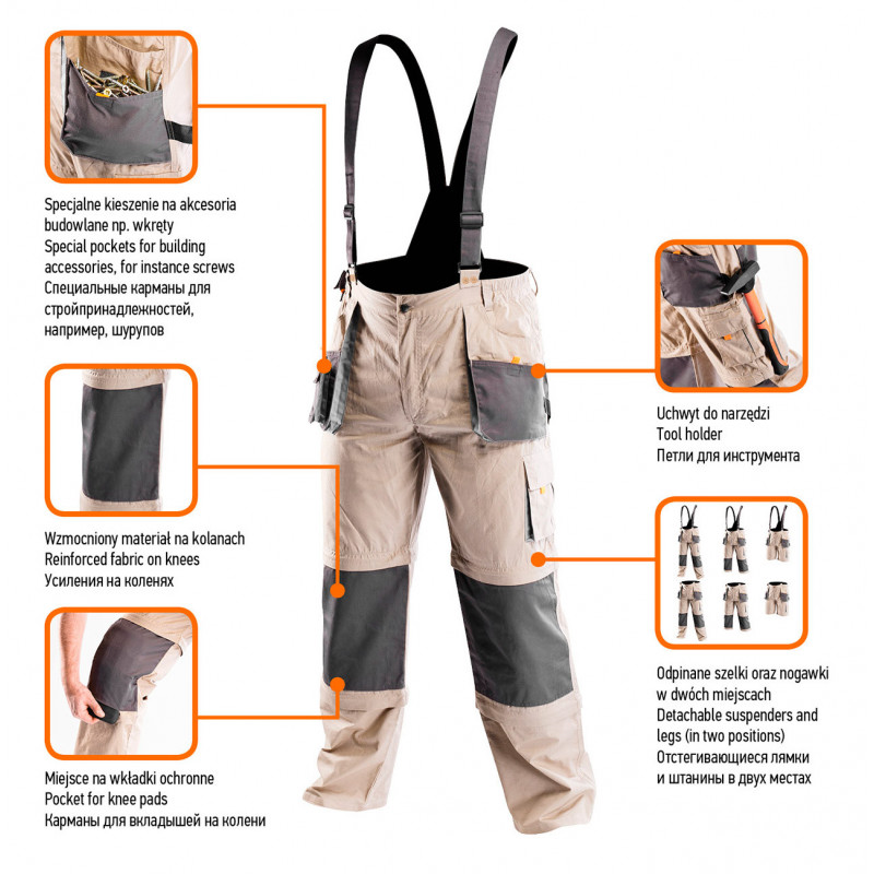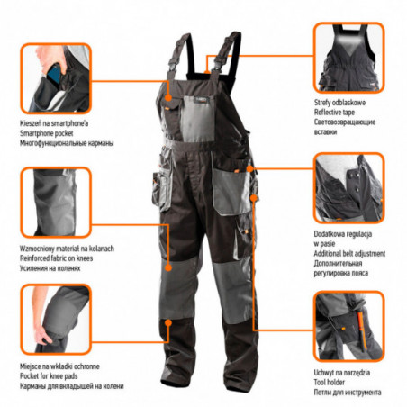 Spodnie robocze na szelkach 6w1, rozmiar L/52