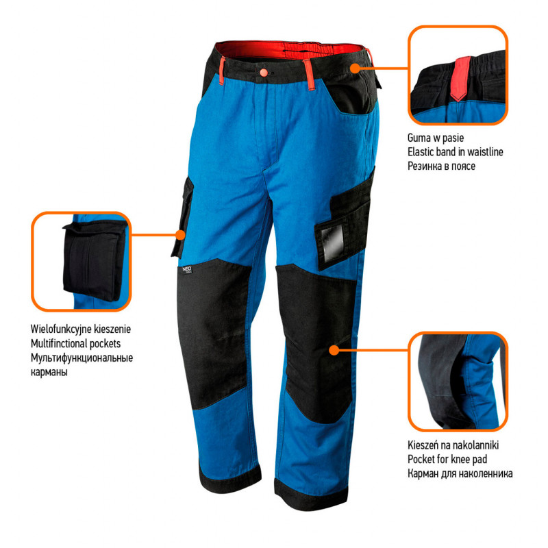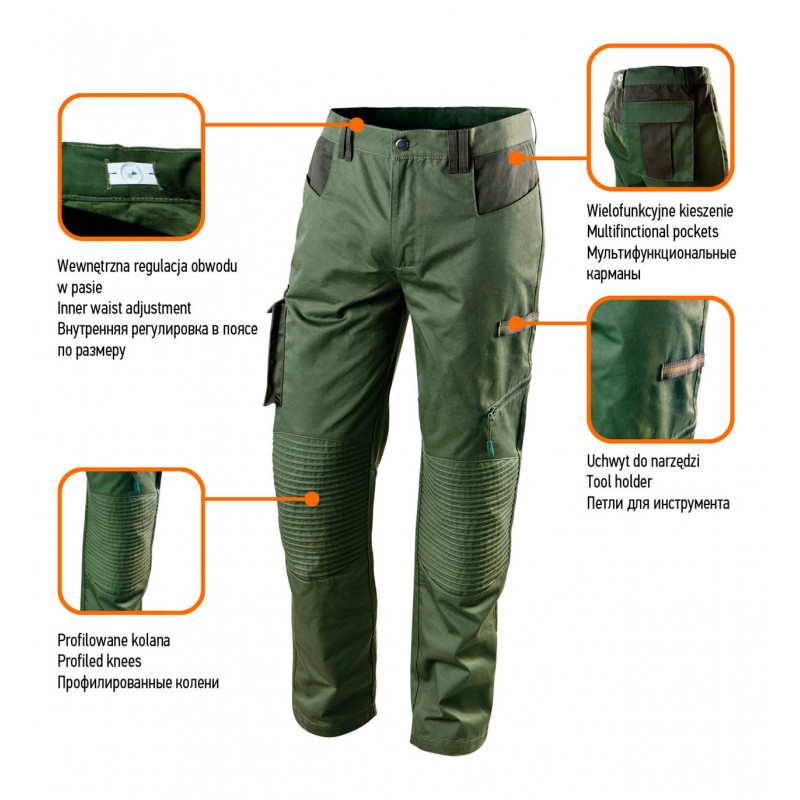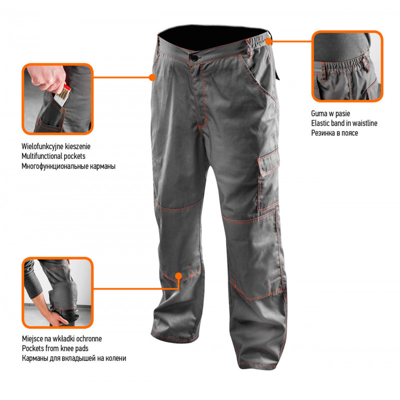 Spodnie robocze, rozmiar LD/54, odpinane kieszenie i nogawki