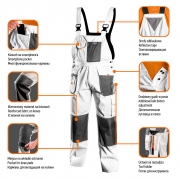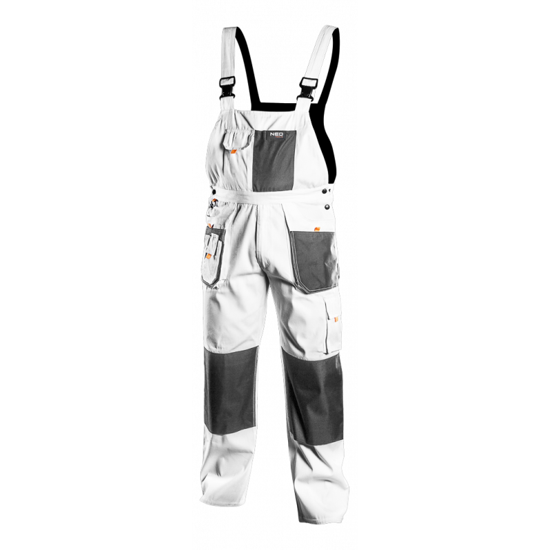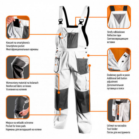 Spodnie robocze na szelkach, białe, HD, rozmiar L/52