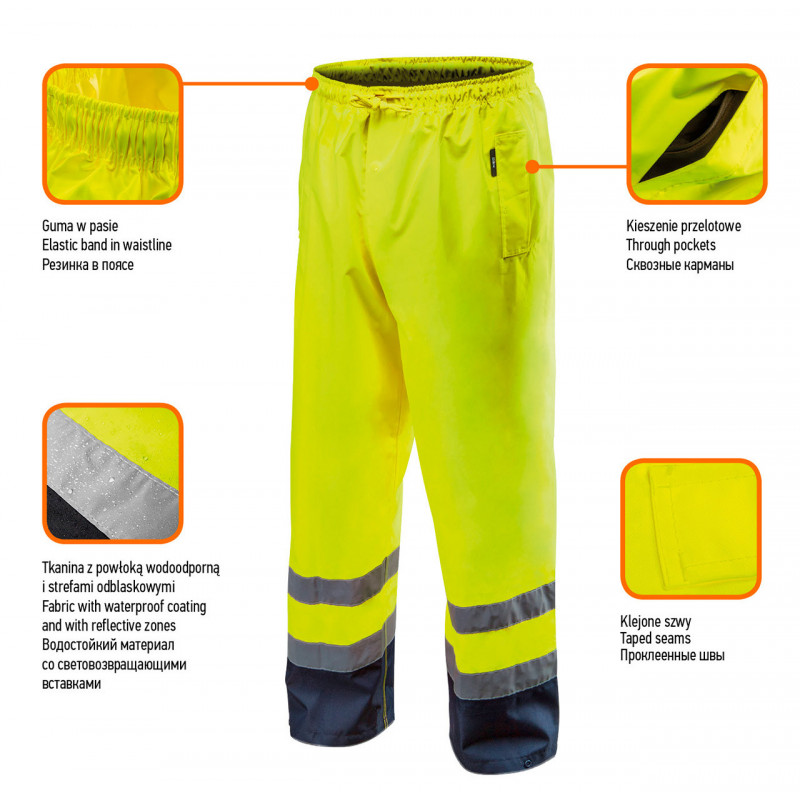 Spodnie robocze ostrzegawcze wodoodporne, żółte, rozmiar XL