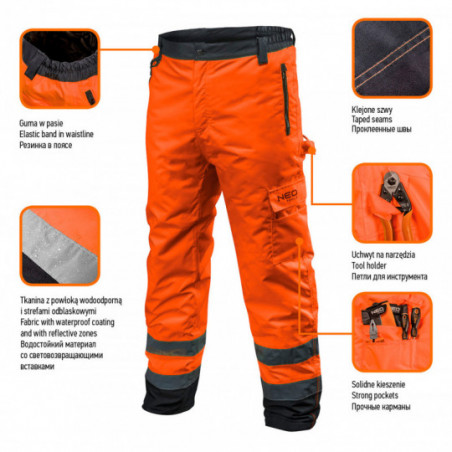 Spodnie robocze ostrzegawcze ocieplane, pomarańczowe, rozmiar XL