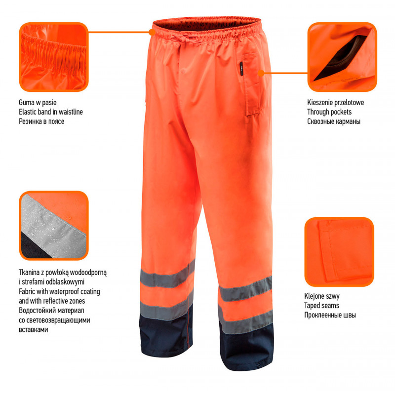 Spodnie robocze ostrzegawcze wodoodporne, pomarańczowe, rozmiar XXXL