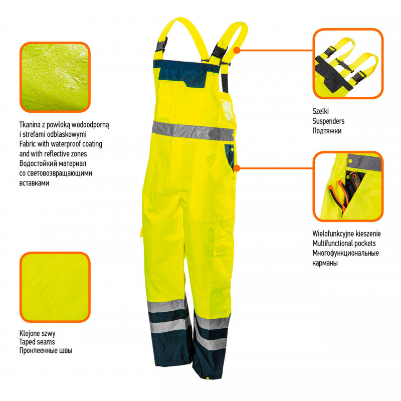 Ogrodniczki robocze, ostrzegawcze, wodoodporne, żółte, rozmiar L