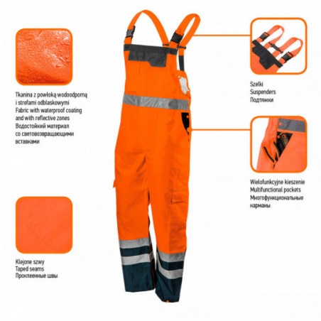 Ogrodniczki robocze, ostrzegawcze, wodoodporne, pomarańczowe, rozmiar XL