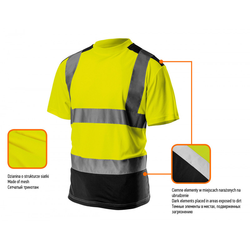 T-shirt ostrzegawczy, ciemny dół, żółty, rozmiar XL