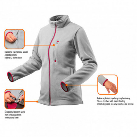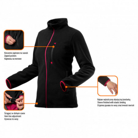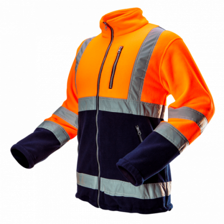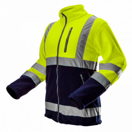 Bluza polarowa ostrzegawcza, żółta, rozmiar S, o intensywnej widzialności, klasa 2 wg normy EN ISO 20471, wykonana z wysokiej jakości polaru 280 g/m2, 3 kieszenie zapinane na suwak, ciemne wstawki w miejscach narażonych na ubrudzenie, certyfikat CE, EN ISO 13688:2013